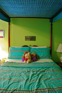 My mom also made my canopy from a sheet set that came with the duvet set and some cool fuzzy fabric that she had. She made the curtains from that same sheet set. I know, she's ridiculous.